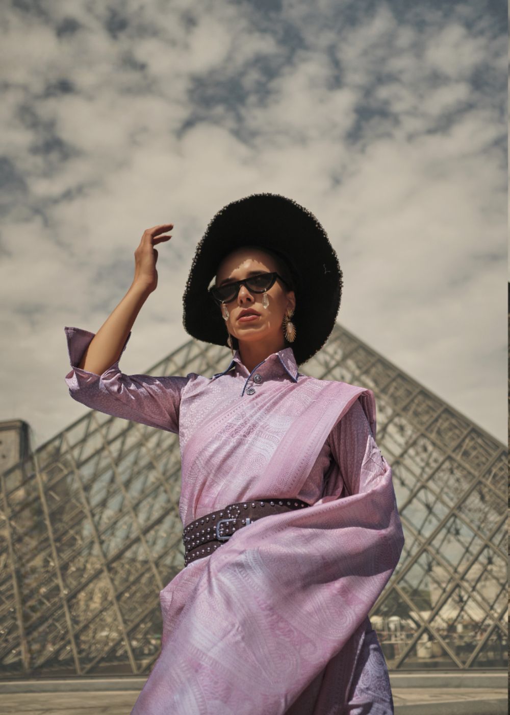 Lavender Lilac Satin Silk Saree with Self-Weaving