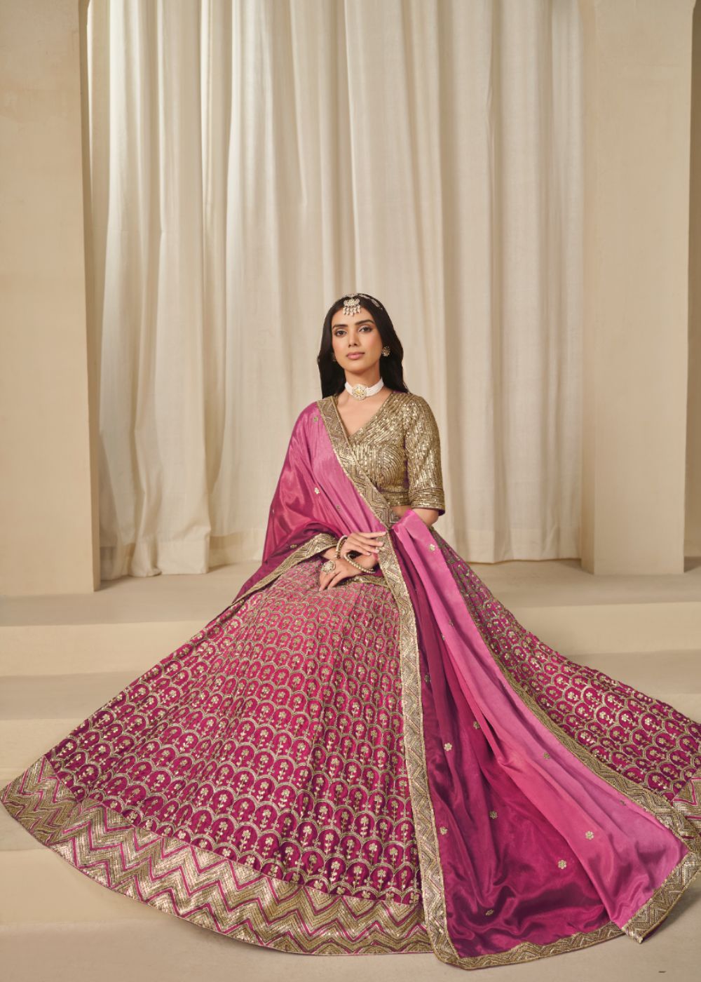 Magenta Empress – Queen’s Pink Chinon Silk Lehenga with Exquisite Royal Detailing